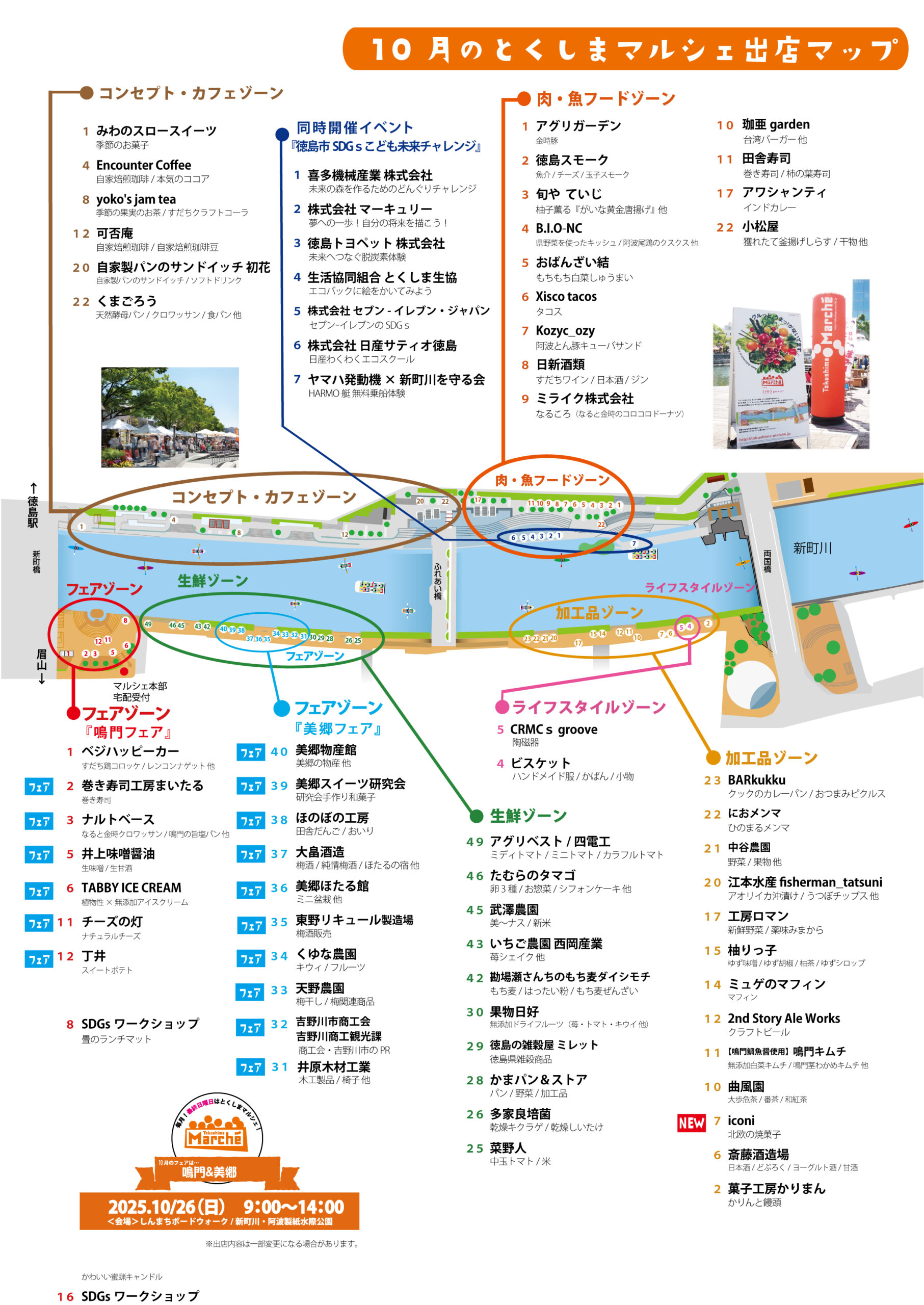 開催情報10月26日(日)開催のとくしまマルシェの出店マップです。🗺