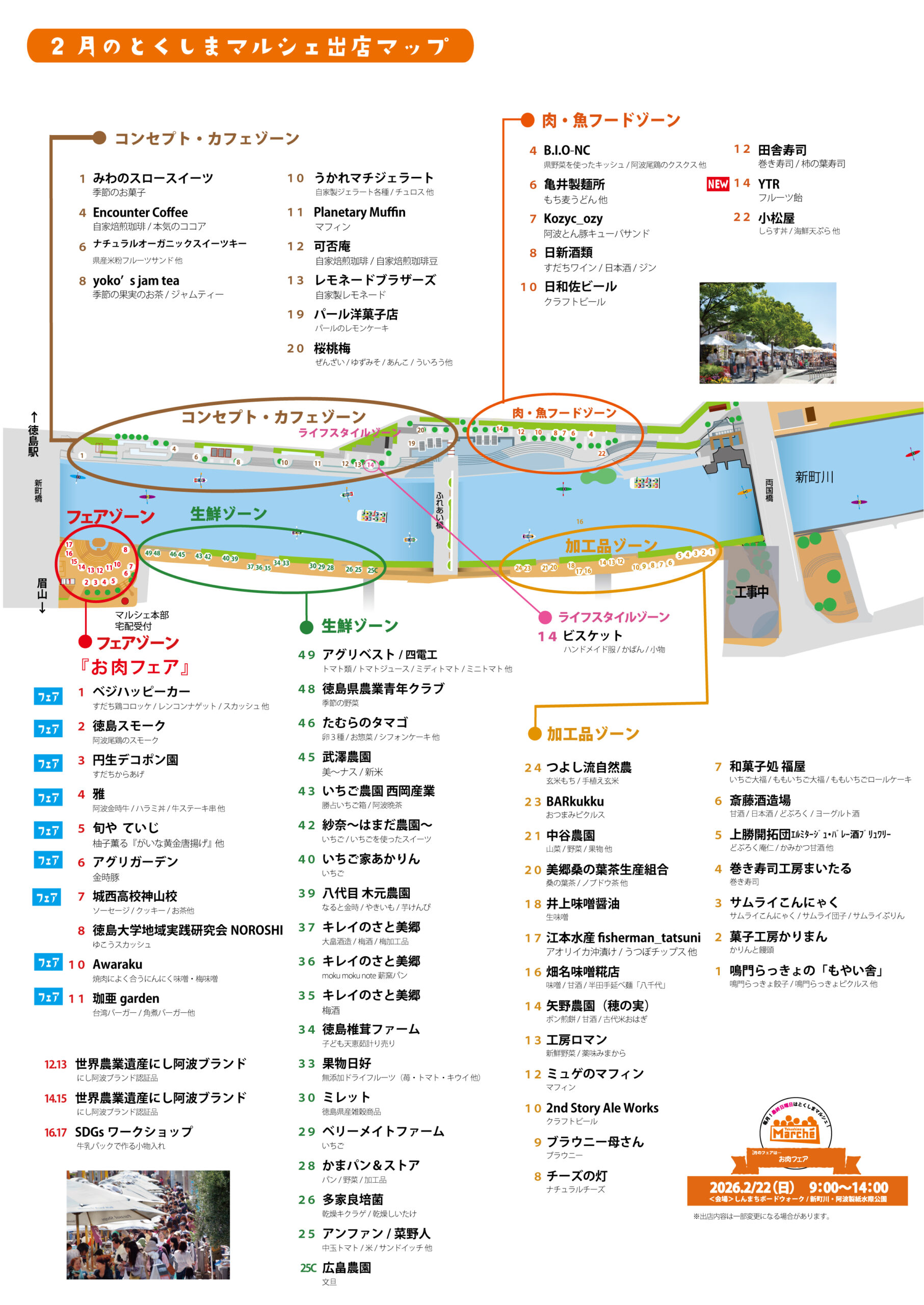 2月22日(日)開催のとくしまマルシェの出店マップです。🗺