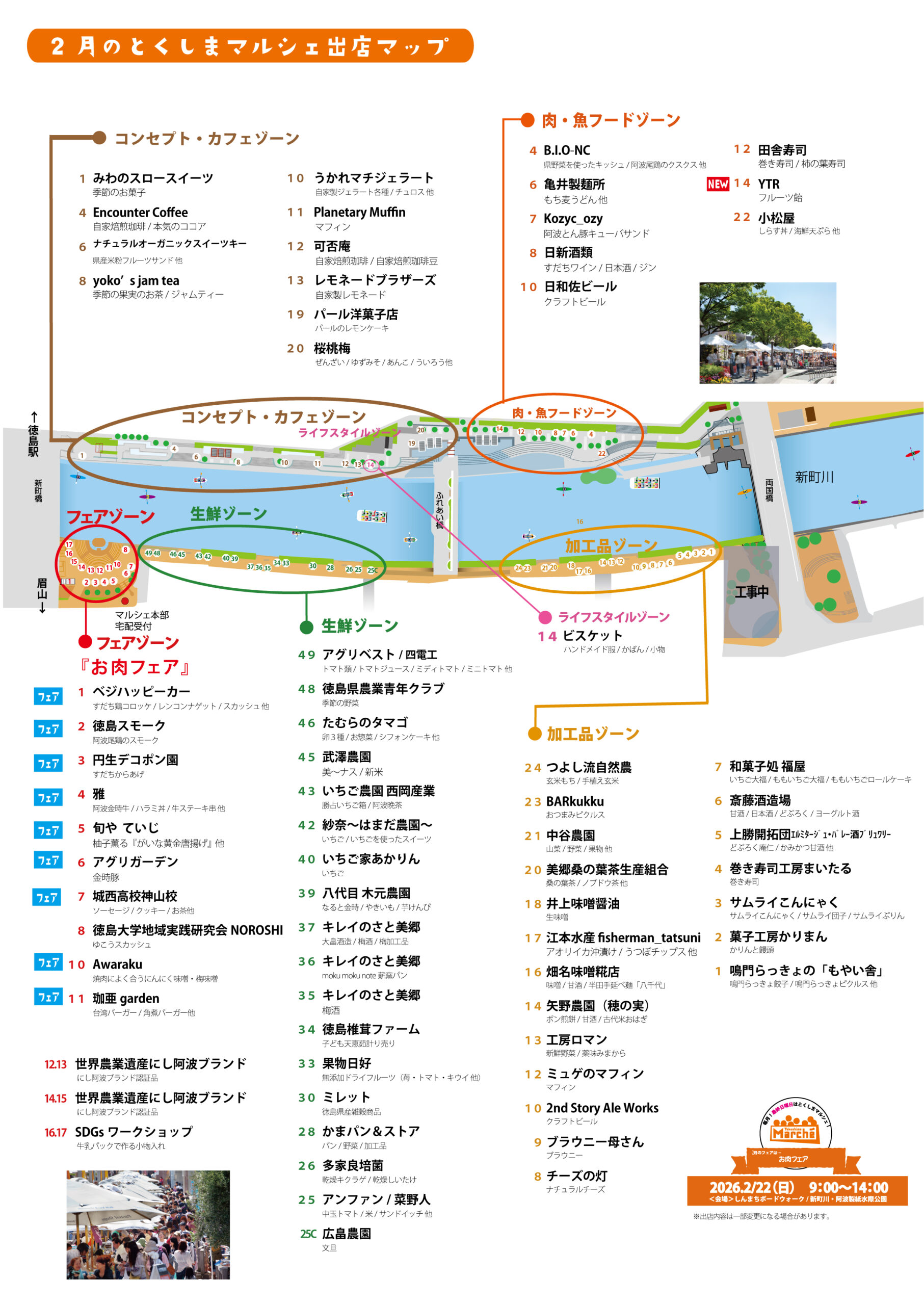2月22日(日)開催のとくしまマルシェの出店マップです。🗺